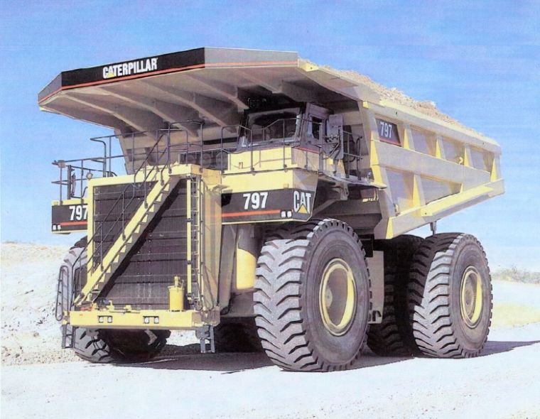 A Terex Titan érdemeit jól mutatja, hogy az őt legyőző első bányadömper csak 25 évvel a bemutatása után, 1998-ban készült el. Az új Caterpillar 797-es több dologban is különbözik más bányadömperektől. Ebben a szegmensben a többi gyártó kizárólag villamos meghajtást alkalmaz, ahogy azt a Terex Titannál vagy a korábban bemutatott Komatsunál is láthattuk. A Caterpillar az egyetlen gyártó, amely még ilyen méretekben sem használja a bevált megoldást, helyette az autókban és a kamionokban megszokott hagyományos mechanikus és hidrodinamikus (automataváltós) meghajtással szereli bányadömpereit. De erről később.
